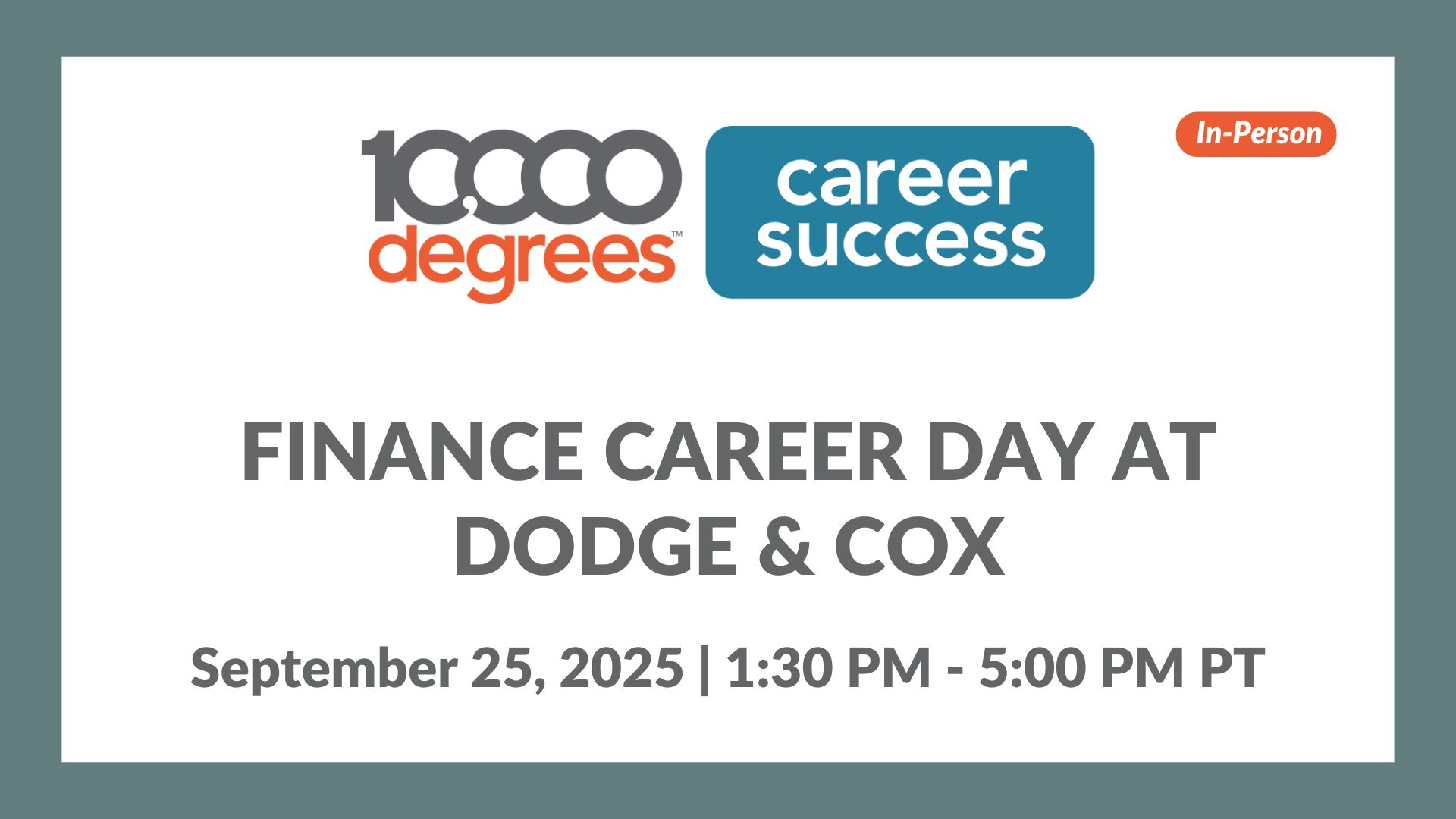 In-Person, San Francisco Attend the 3rd Annual Finance Career Day at Dodge & Cox in San Francisco. Meet professionals, explore career paths, and learn about the Summer Internship. Open to 10,000 Degrees college students, with limited spots available! Login to Register