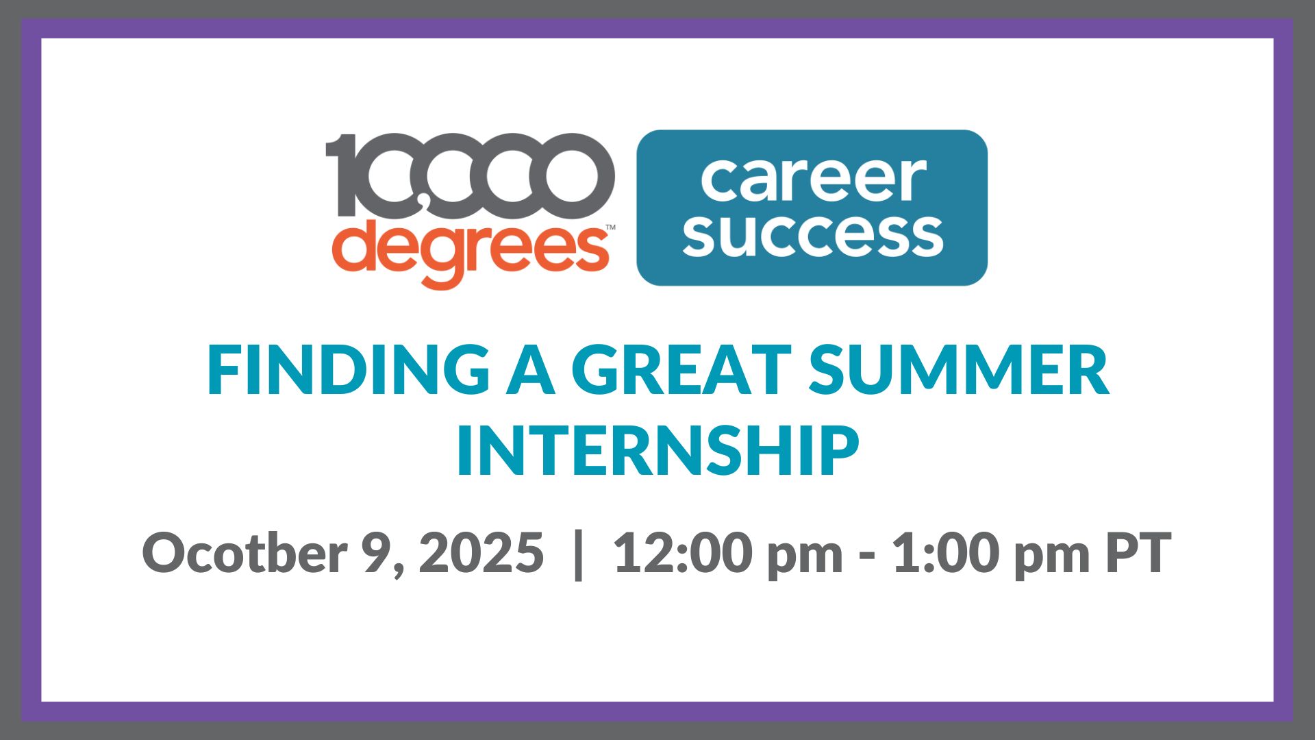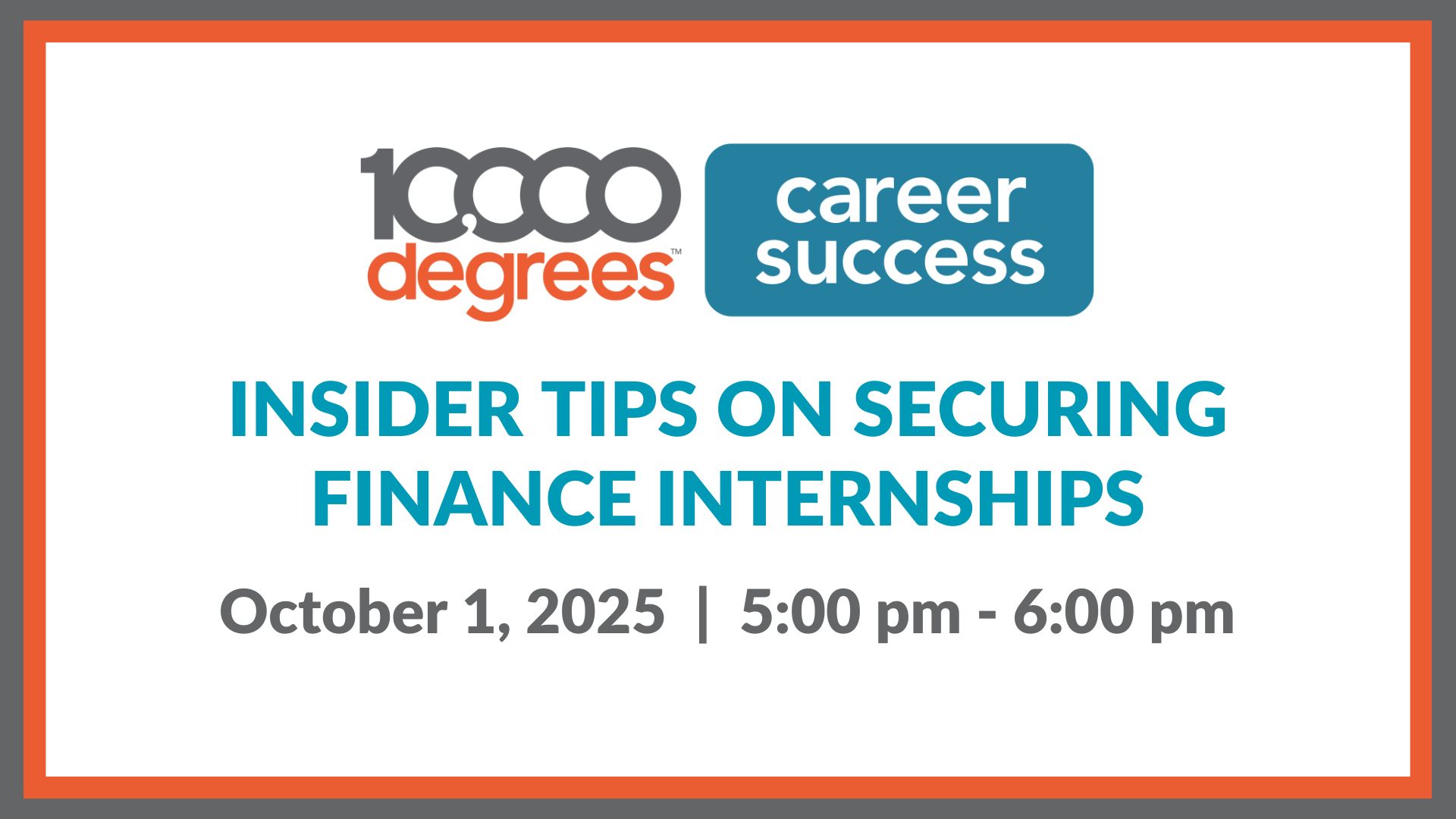 Join 10,000 Degrees to learn about the power of LinkedIn and how to use the platform to network and job search. We’ll cover the basics of LinkedIn - creating your professional brand, how to build your professional network, and strategies for your internship and job search utilizing LinkedIn.